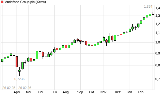 Mit dem Anstieg auf 1,35 EUR hat die Vodafone Group-Aktie (ISIN GB00BH4HKS39) am 25.02.2026 ein neues 3-Jahres-Hoch erreicht und damit den Kurs vom 24.02.2026 eingestellt.Die ...weiterlesen