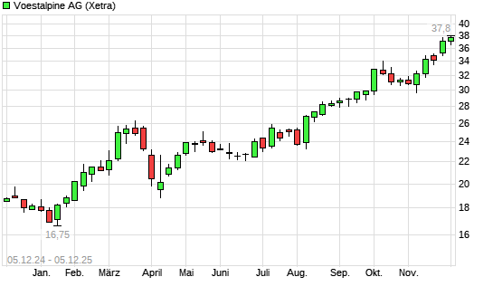 Mit dem Anstieg auf 37,38 EUR hat die Voestalpine-Aktie (ISIN AT0000937503) am 04.12.2025 ein neues 3-Jahres-Hoch erreicht und damit den Kurs vom 01.12.2025 eingestellt.