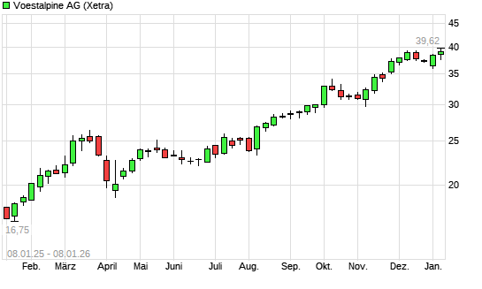 Mit dem Anstieg auf 39,00 EUR hat die Voestalpine-Aktie (ISIN AT0000937503) am 07.01.2026 ein neues 3-Jahres-Hoch erreicht und damit den Kurs vom 15.12.2025 eingestellt.