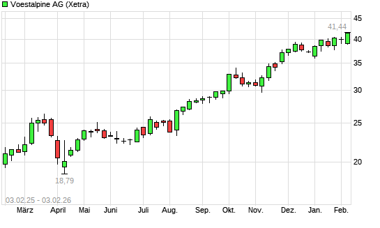 Mit dem Anstieg auf 40,04 EUR hat die Voestalpine-Aktie (ISIN AT0000937503) am 02.02.2026 ein neues 3-Jahres-Hoch erreicht und damit den Kurs vom 23.01.2026 eingestellt.