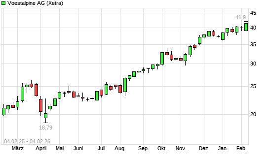 Mit dem Anstieg auf 40,82 EUR hat die Voestalpine-Aktie (ISIN AT0000937503) am 03.02.2026 ein neues 5-Jahres-Hoch erreicht und damit den Kurs vom 13.08.2021 eingestellt.
