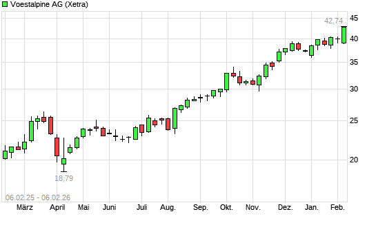 Mit dem Anstieg auf 41,48 EUR hat die Voestalpine-Aktie (ISIN AT0000937503) am 05.02.2026 ein neues 5-Jahres-Hoch erreicht und damit den Kurs vom 04.02.2026 eingestellt.