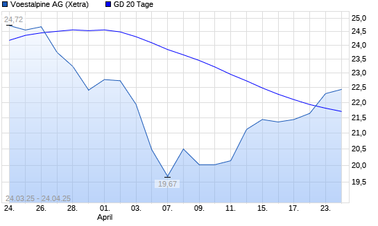 Mit dem Anstieg auf 22,08 EUR hat die Voestalpine-Aktie am 23.04.2025 die 20-Tage-Linie nach oben gekreuzt.