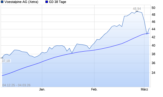 Mit dem Rücksetzer auf 41,82 EUR hat die Voestalpine-Aktie am 03.03.2026 die 38-Tage-Linie nach unten gekreuzt.