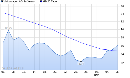 Mit dem Anstieg auf 85,45 EUR hat die Volkswagen St-Aktie am 05.12.2024 die 20-Tage-Linie nach oben gekreuzt.