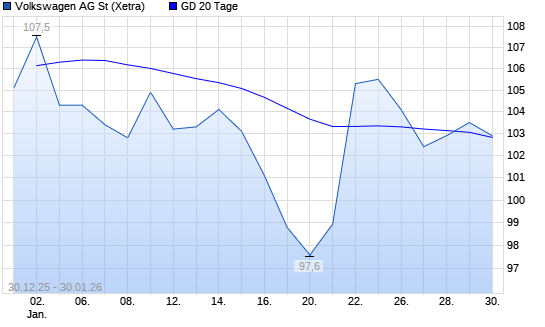 Mit dem Anstieg auf 103,40 EUR hat die Volkswagen St-Aktie am 29.01.2026 die 20-Tage-Linie nach oben gekreuzt.