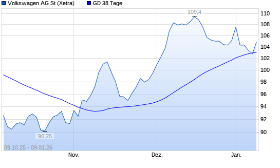 Mit dem Rücksetzer auf 103,40 EUR hat die Volkswagen St-Aktie am 08.01.2026 die 38-Tage-Linie nach unten gekreuzt.