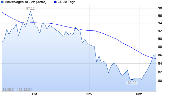 Mit dem Anstieg auf 85,94 EUR hat die Volkswagen Vz-Aktie am 10.12.2024 die 38-Tage-Linie nach oben gekreuzt.