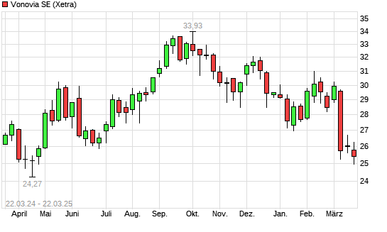 Mit dem Rücksetzer auf 25,53 EUR hat die Vonovia-Aktie (ISIN DE000A1ML7J1) am 21.03.2025 ein neues 6-Monats-Tief erreicht und damit den Kurs vom 20.03.2025 eingestellt.