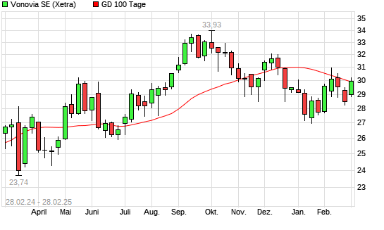 Mit dem Anstieg auf 30,06 EUR hat die Vonovia-Aktie am 27.02.2025 die 100-Tage-Linie nach oben gekreuzt.