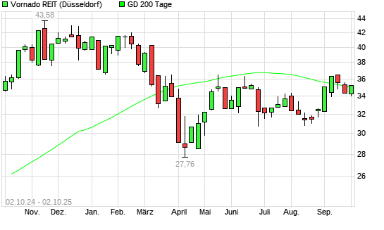 Mit dem Anstieg auf 34,83 EUR hat die Vornado Realty Trust-Aktie am 01.10.2025 die 200-Tage-Linie nach oben gekreuzt.