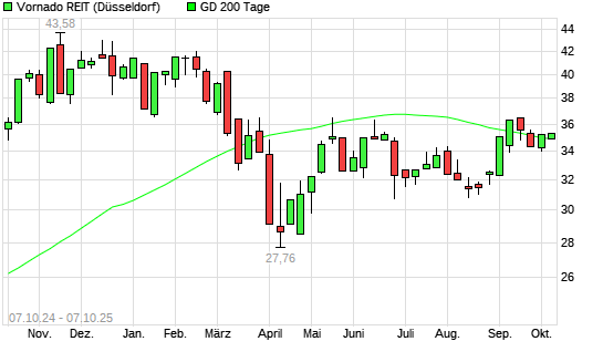 Mit dem Anstieg auf 35,52 EUR hat die Vornado Realty Trust-Aktie am 06.10.2025 die 200-Tage-Linie nach oben gekreuzt.