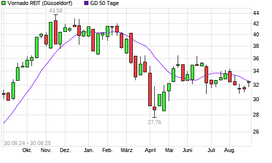 Mit dem Anstieg auf 32,48 EUR hat die Vornado Realty Trust-Aktie am 29.08.2025 die 50-Tage-Linie nach oben gekreuzt.