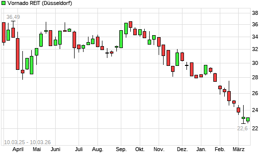 Mit dem Rücksetzer auf 22,93 EUR hat die Vornado Realty Trust-Aktie (ISIN US9290421091) am 09.03.2026 ein neues 12-Monats-Tief erreicht und damit den Kurs vom ...weiterlesen