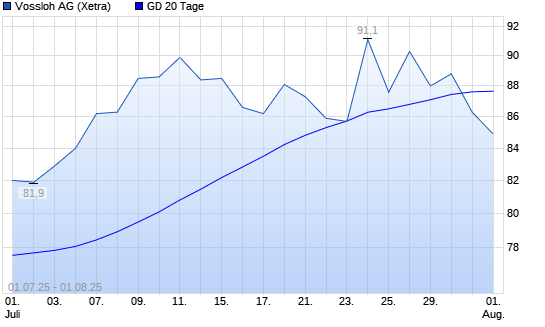 Mit dem Rücksetzer auf 86,00 EUR hat die Vossloh-Aktie am 31.07.2025 die 20-Tage-Linie nach unten gekreuzt.