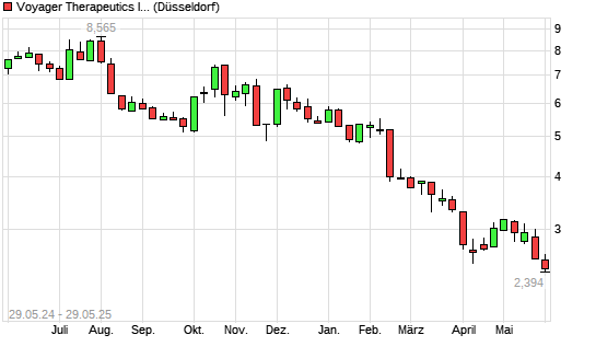 Mit dem Rücksetzer auf 2,36 EUR hat die Voyager Therapeutics-Aktie (ISIN US92915B1061) am 28.05.2025 ein neues 3-Jahres-Tief erreicht und damit den Kurs vom 26.05.2025 eingestellt.