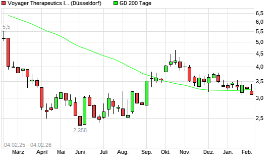 Mit dem Anstieg auf 3,23 EUR hat die Voyager Therapeutics-Aktie am 03.02.2026 die 200-Tage-Linie nach oben gekreuzt.