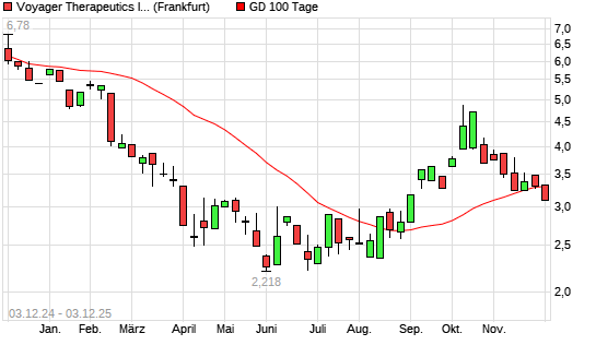 Mit dem Rücksetzer auf 3,24 EUR hat die Voyager Therapeutics-Aktie am 02.12.2025 die 100-Tage-Linie nach unten gekreuzt.