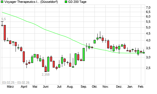 Mit dem Rücksetzer auf 3,08 EUR hat die Voyager Therapeutics-Aktie am 02.02.2026 die 200-Tage-Linie nach unten gekreuzt.