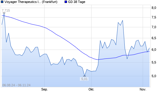 Mit dem Rücksetzer auf 5,90 EUR hat die Voyager Therapeutics-Aktie am 05.11.2024 die 38-Tage-Linie nach unten gekreuzt.