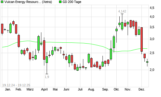 Mit dem Rücksetzer auf 2,21 EUR hat die Vulcan Energy Resources-Aktie am 18.12.2025 die 200-Tage-Linie nach unten gekreuzt.