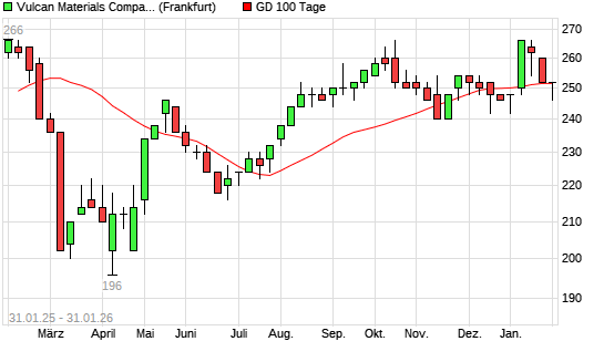 Mit dem Anstieg auf 252,00 EUR hat die Vulcan Materials Company-Aktie am 30.01.2026 die 100-Tage-Linie nach oben gekreuzt.
