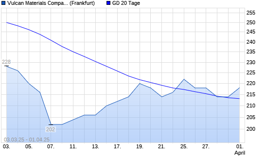 Mit dem Anstieg auf 214,00 EUR hat die Vulcan Materials Company-Aktie am 31.03.2025 die 20-Tage-Linie nach oben gekreuzt.