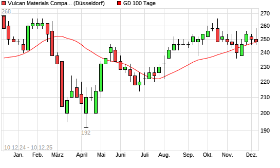 Mit dem Rücksetzer auf 248,00 EUR hat die Vulcan Materials Company-Aktie am 09.12.2025 die 100-Tage-Linie nach unten gekreuzt.