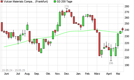 Mit dem Rücksetzer auf 236,00 EUR hat die Vulcan Materials Company-Aktie am 14.05.2025 die 200-Tage-Linie nach unten gekreuzt.