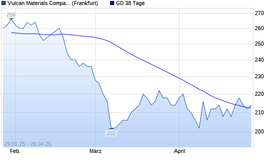 Mit dem Rücksetzer auf 212,00 EUR hat die Vulcan Materials Company-Aktie am 28.04.2025 die 38-Tage-Linie nach unten gekreuzt.