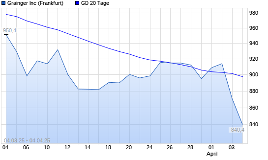 Mit dem Rücksetzer auf 870,60 EUR hat die W. W. Grainger-Aktie am 03.04.2025 die 20-Tage-Linie nach unten gekreuzt.