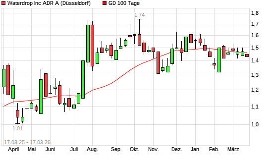 Mit dem Anstieg auf 1,48 EUR hat die WATERDROP ADS/10 CL.A-Aktie am 16.03.2026 die 100-Tage-Linie nach oben gekreuzt.