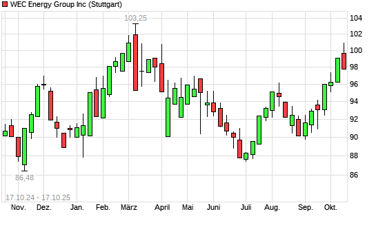 Mit dem Anstieg auf 100,05 EUR hat die WEC Energy Group-Aktie (ISIN US92939U1060) am 16.10.2025 ein neues 6-Monats-Hoch erreicht und damit den Kurs vom 13.10.2025 eingestellt.