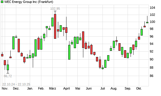 Mit dem Anstieg auf 101,60 EUR hat die WEC Energy Group-Aktie (ISIN US92939U1060) am 21.10.2025 ein neues 6-Monats-Hoch erreicht und damit den Kurs vom 20.10.2025 eingestellt.