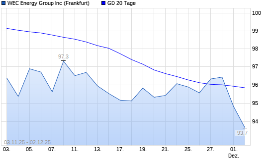 Mit dem Rücksetzer auf 94,84 EUR hat die WEC Energy Group-Aktie am 01.12.2025 die 20-Tage-Linie nach unten gekreuzt.
