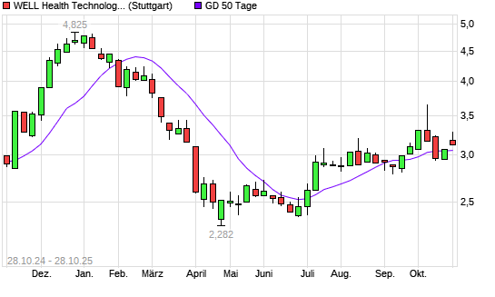 Mit dem Anstieg auf 3,15 EUR hat die WELL HEALTH TECHS-Aktie am 27.10.2025 die 50-Tage-Linie nach oben gekreuzt.
