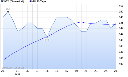 Mit dem Anstieg auf 147,00 EUR hat die WEX-Aktie am 28.08.2025 die 20-Tage-Linie nach oben gekreuzt.