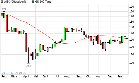 Mit dem Rücksetzer auf 131,00 EUR hat die WEX-Aktie am 20.01.2026 die 100-Tage-Linie nach unten gekreuzt.