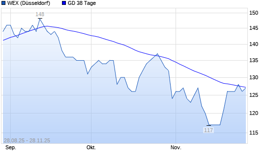 Mit dem Rücksetzer auf 127,00 EUR hat die WEX-Aktie am 27.11.2025 die 38-Tage-Linie nach unten gekreuzt.
