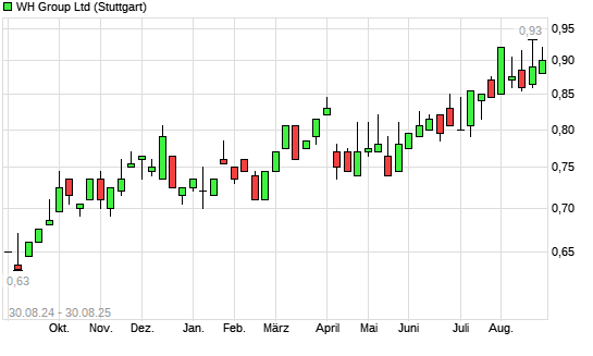 Mit dem Anstieg auf 0,92 EUR hat die WH GROUP-Aktie (ISIN KYG960071028) am 29.08.2025 ein neues 5-Jahres-Hoch erreicht und damit den Kurs vom 13.08.2025 eingestellt.