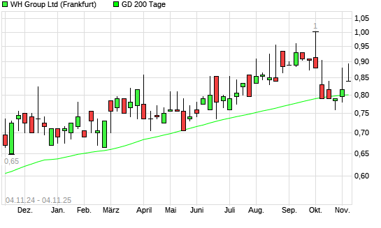 Mit dem Anstieg auf 0,89 EUR hat die WH GROUP-Aktie am 03.11.2025 die 200-Tage-Linie nach oben gekreuzt.