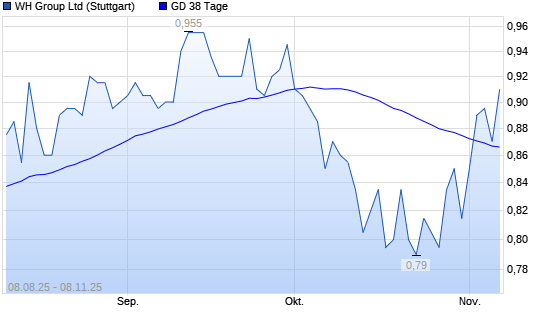 Mit dem Rücksetzer auf 0,88 EUR hat die WH GROUP-Aktie am 07.11.2025 die 38-Tage-Linie nach unten gekreuzt.
