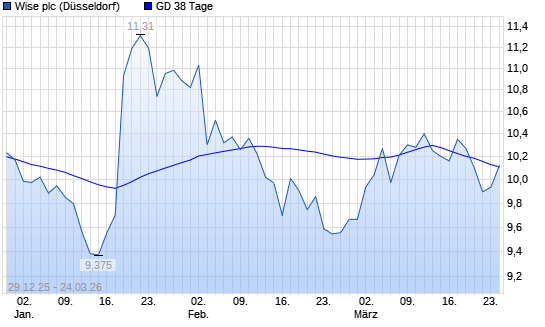 Mit dem Anstieg auf 10,10 EUR hat die WISE-Aktie am 23.03.2026 die 38-Tage-Linie nach oben gekreuzt.