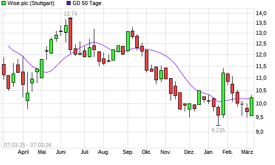 Mit dem Anstieg auf 10,15 EUR hat die WISE-Aktie am 06.03.2026 die 50-Tage-Linie nach oben gekreuzt.
