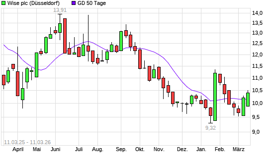Mit dem Anstieg auf 10,23 EUR hat die WISE-Aktie am 10.03.2026 die 50-Tage-Linie nach oben gekreuzt.