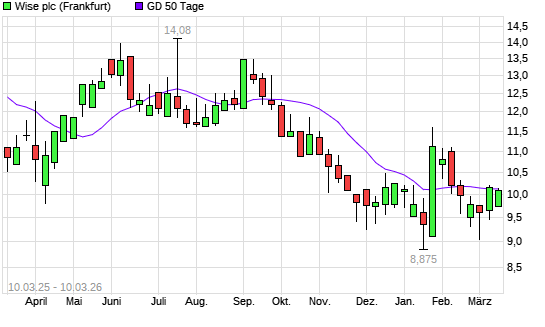 Mit dem Rücksetzer auf 10,08 EUR hat die WISE-Aktie am 09.03.2026 die 50-Tage-Linie nach unten gekreuzt.