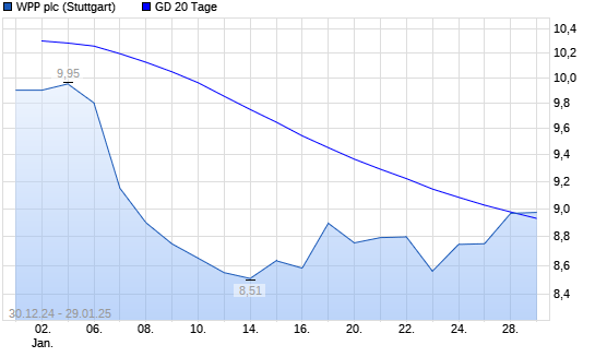 Mit dem Anstieg auf 9,00 EUR hat die WPP-Aktie am 28.01.2025 die 20-Tage-Linie nach oben gekreuzt.