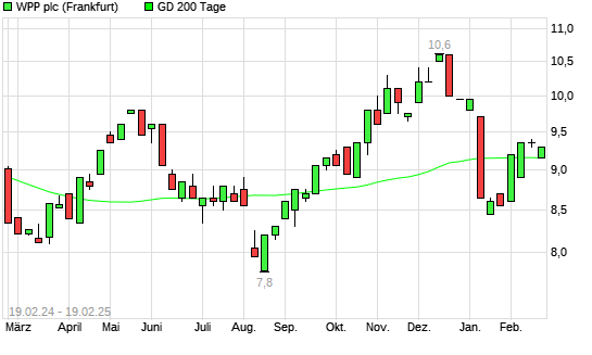 Mit dem Anstieg auf 9,25 EUR hat die WPP-Aktie am 18.02.2025 die 200-Tage-Linie nach oben gekreuzt.