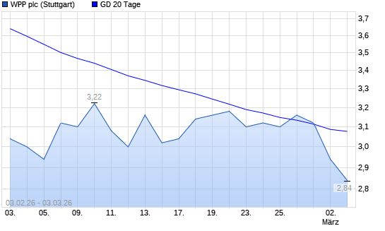 Mit dem Rücksetzer auf 2,92 EUR hat die WPP-Aktie am 02.03.2026 die 20-Tage-Linie nach unten gekreuzt.
