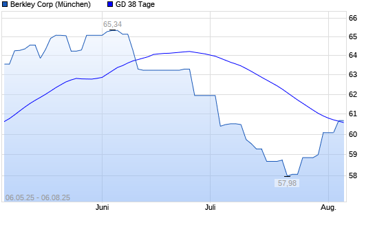Mit dem Anstieg auf 60,70 EUR hat die W.R. Berkley-Aktie am 05.08.2025 die 38-Tage-Linie nach oben gekreuzt.